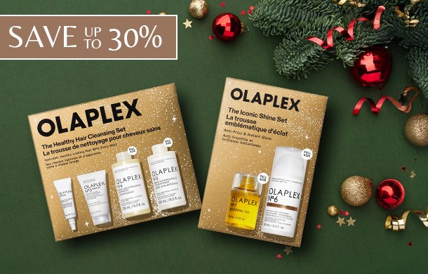 Save up to 30% on Olaplex this holiday season! The Healthy Hair Cleansing Set strengthens and hydrates, while the Iconic Shine Set smooths, adds shine, and protects from heat.