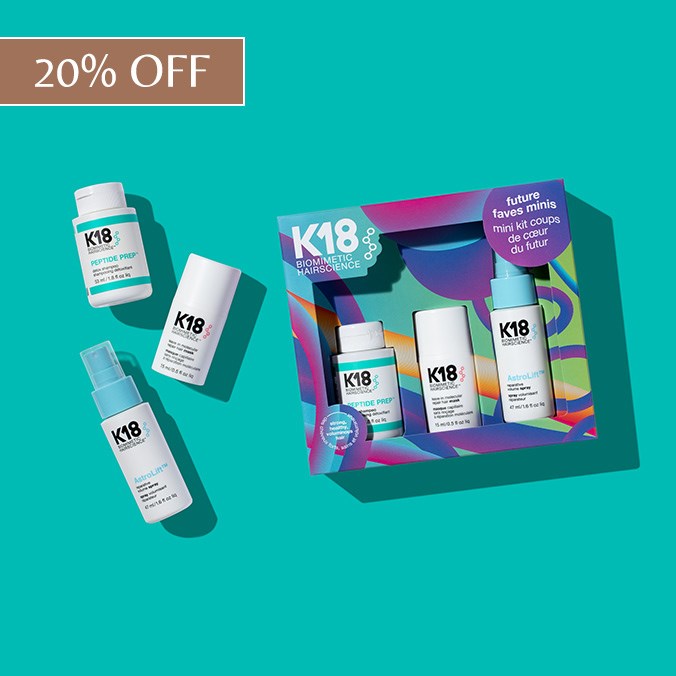 Save on K18’s Holiday Travel Kit featuring the new Astrolift, Peptide Prep™ Detox Shampoo, and the Leave-In Molecular Repair Hair Mask—delivering lift, detox, and molecular repair for strong, healthy holiday hair.
