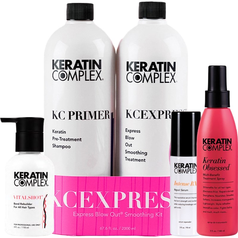 Keratin Complex Express Service Large Kit includes treatment, iron, bowl, and brush.
