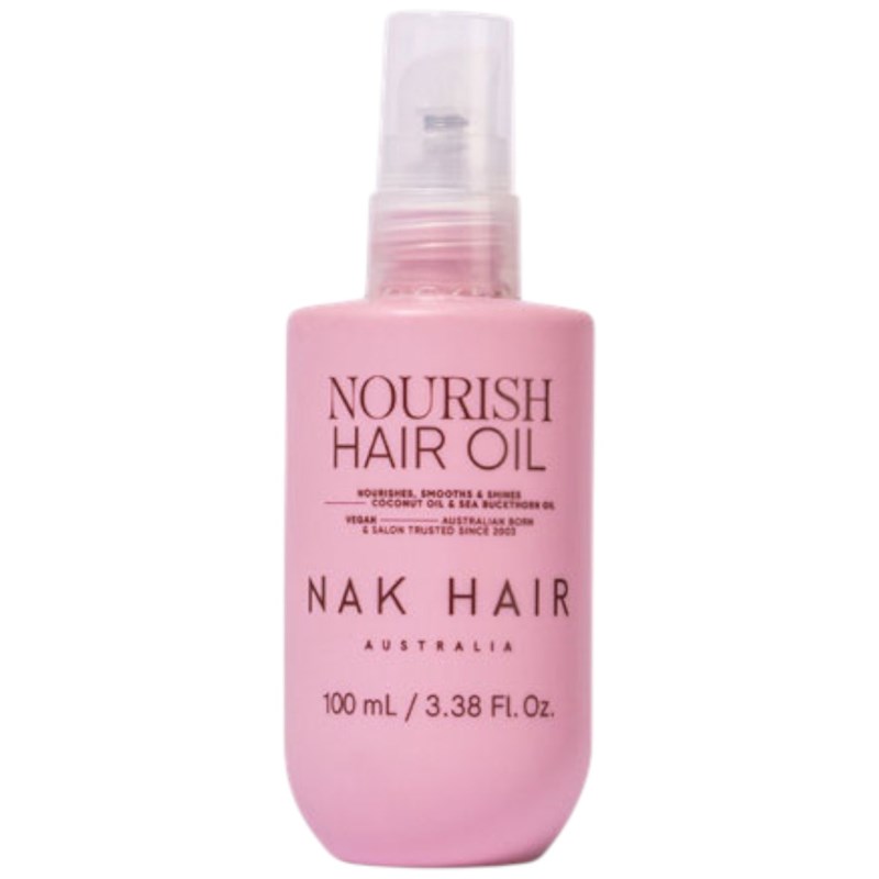 NAK Hair NOURISH HAIR OIL nourishes, smooths, and shines. It is a nourishing hair oil enriched with Coconut Oil and Sea Buckthorn Oil to revive luster in dry or damaged hair. Recommended for all hair types.