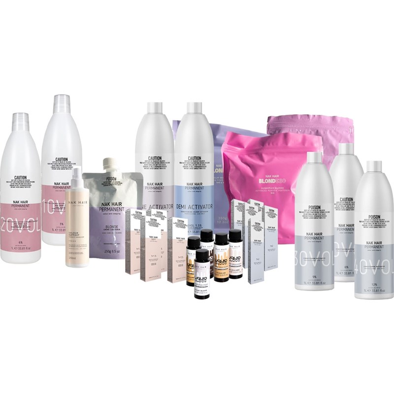 NAK Professional Complete Colour Collection Intro Offer includes colors, shampoos, conditioners, activators, lighteners, equalizers, and color merchandise kit.