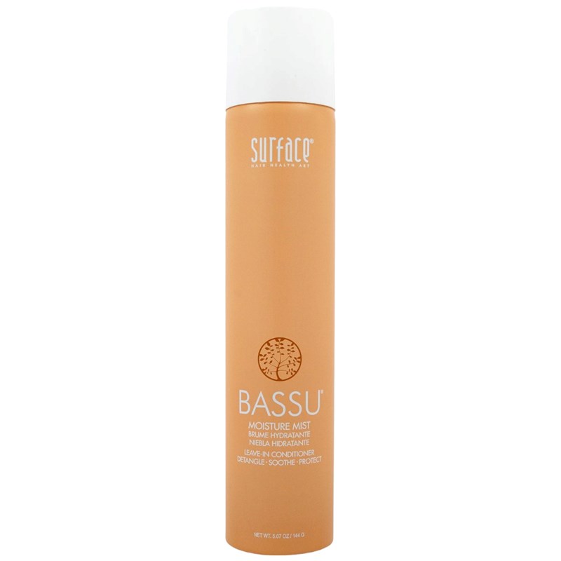 Surface Hair BASSU MOISTURE MIST instantly conditions, detangles, moisturizes, and soothes dry hair. Light weight Babassu Oil restores moisture back into and onto the hair while Moringa Oil protects hair from free radical damage.
